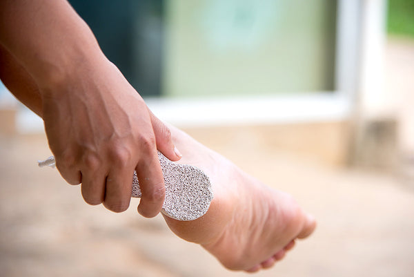 Use warm, soapy water to thoroughly wash your feet, and don’t forget to clean between your toes. Using a foot exfoliant, gently scrub your feet to reduce rough patches of skin. Salt and sugar-based foot scrubs and pumice stones work well for this. Gently massage the feet and calves, then rinse thoroughly.