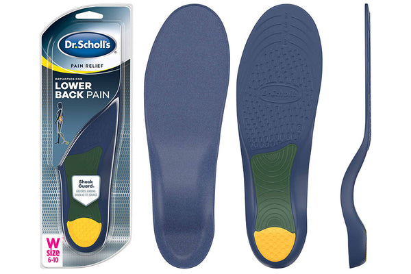 - Orthotics – Try using orthotics with your shoes. Dr. Scholl’s® Pain Relief Orthotics for Lower Back Pain are designed to absorb shock. They also increase stability and reduce extra movements that can aggravate back pain.