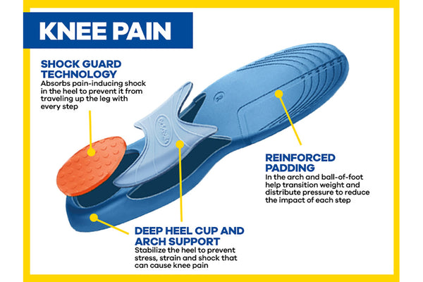 Adding Dr. Scholl’s orthotics for back pain or orthotics for knee pain to your shoes can help you walk with better alignment, provide immediate pain relief, absorb shock, correct for imbalances, and support your feet for more comfort while walking and at rest.